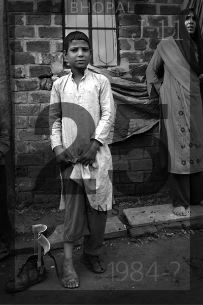 Sanjin a une déformation podale; il a déjà eu 3 opérations. Sa mère vivait près de l'usine d'Union Carbide lors de l'accident.