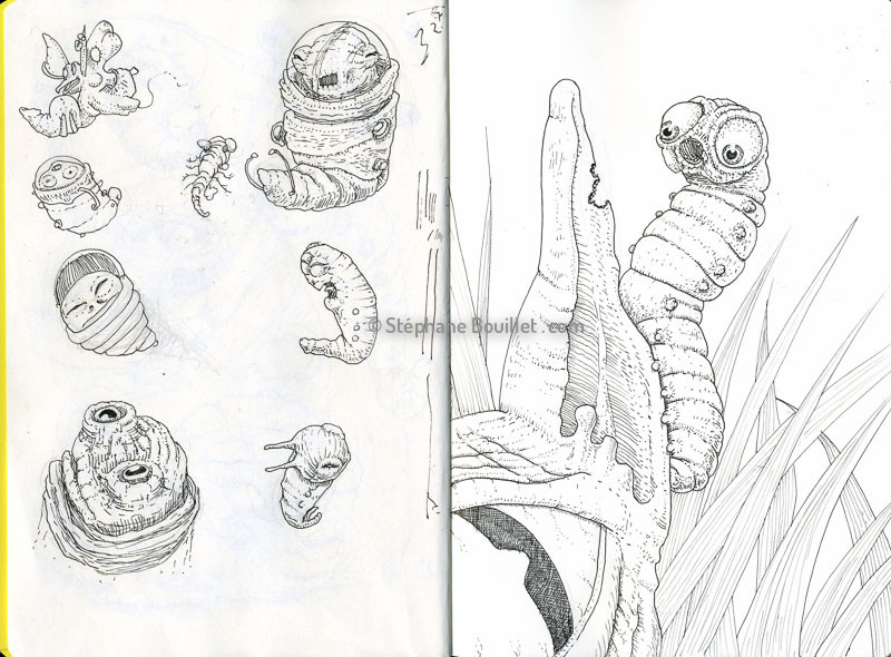 ILLUSTRATION : Sketchbook ou carnet de croquis: asicot intersidéral et chat nu en proie à une monstrueuse chenille…