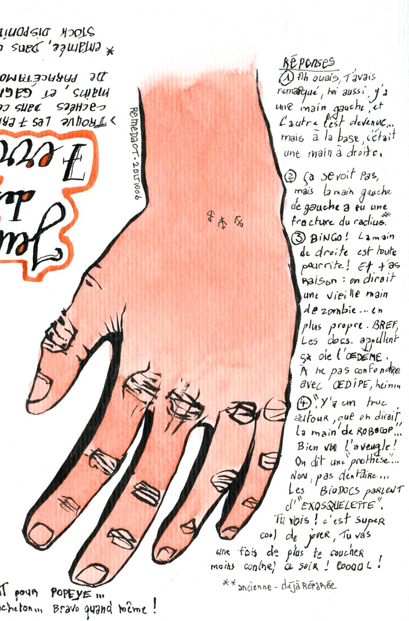Bon allez, quelques infos: main gauche droite / oedème / attelle : pansement / ancres / broches / tout ça sur fracture partielle du scaphoïde et ± totale des ligaments scapho-lunaires