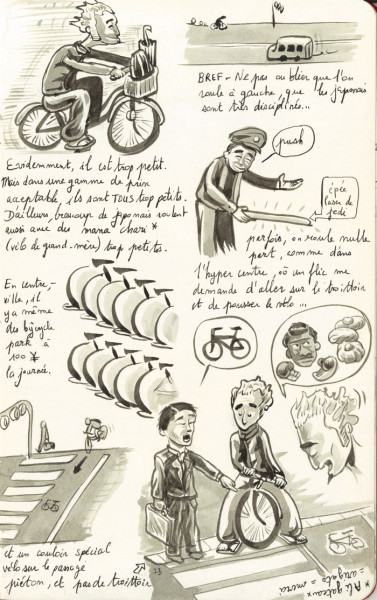 Par S. BOUILLET, 17 février, 2016 Publié dans Bande dessinée & Manga Créé avec Encre de Chine Pinceau Bâton d'encre de Chine Sketchbook Kyōto à vélo: achat, conduite, parking vélo... Voir plus de Nomadisme Bus Parking Passage piéton Train Transport Vélo Japon Kyōto Kansai Lost in Kyoto Beta #2 Beta (fanzine)