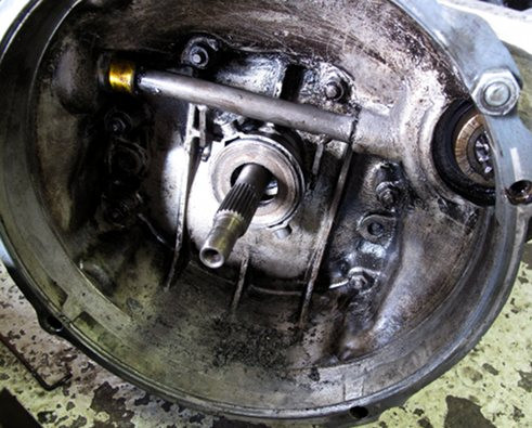 A l'ouverture, la butée est toute limée par la contre-butée (dépot en fond de boite). Il faut dire que ma marge à la pédale d'embrayage était un peu trop importante, et d'ailleurs je m'était dit que je préférais avoir trop de marge que pas assez, pour justement éviter de limer la butée, vu que j'avais ajouté une épaisseur...