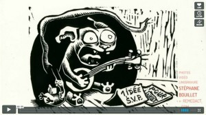 Time-Lapse d'une illustration d'après linogravure: croquis /// report sur la plaque de linoléum /// reprise du dessin à l'encre au pinceau /// gravage /// impresion /// ajout de la note spécifique Linkult.