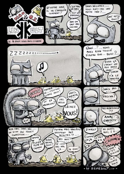 Par S. BOUILLET, 10 décembre, 2012 Publié dans Bande dessinée & Manga Créé avec Encre de Chine Aquarelle Pinceau Plume A4 (±21 x 30 cm) Linkult Discussion entre Mao et les QI au sujet du nom du fanzine oloronais, finalement appelé LINKULT Voir plus de Animal Chat Fanzine Linkult Mao Mao et QI Oiseau Q.I.