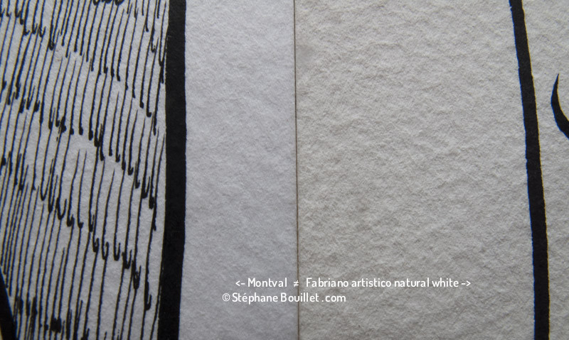 Je ne comparerai ici que les deux types de rouleaux que j'ai essayé: le Canson Montval versus le Fabriano artistico blanc naturel: