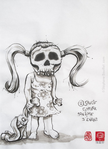 - savoir garder son âme d'enfant est peint avec un pinceau Raphael 8408 martre Kolinsky taille 3 (dont j'ai l'habitude), contrairement aux 4 premières peintures au pinceaux chinois traditionnels
