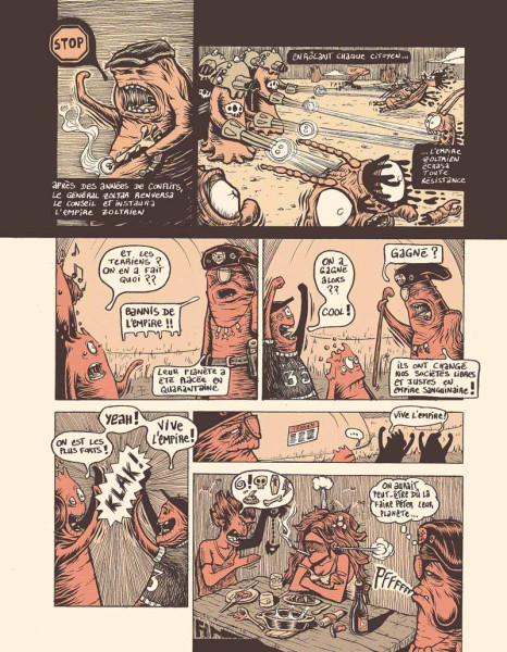 C'est une de mes premières BD absorbant les codes du manga dans les tailles des ellipses (espaces entre les cases) et les cases à fond perdu du haut et du bas, donnant au final des pages à lecture assez verticale.