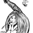Raiponce se prélasse dans un jardin en se servant de ses cheveux comme d'une balançoire. Elle est nu et un lapin s'apprête à lui mordre les orteils de ses pieds nus, alors qu'elle est divertie par un ange-cochon volant au dessus d'elle. Elle attend désespérément le prince charmant qui ne vient pas. Raiponce (en allemand Rapunzel) est un conte populaire allemand qui figure parmi ceux recueillis par les frères Grimm dans le premier volume de Contes de l'enfance et du foyer