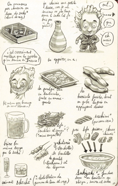Par S. BOUILLET, 17 février, 2016 Publié dans Bande dessinée & Manga Créé avec Encre de Chine Pinceau Bâton d'encre de Chine Sketchbook restaurant azakaya: sake, poulpe sashimi,haricot, bière, yakitori,tsukune, shōchū,Sukiyaki, tofu... Voir plus de Alcool Alimentation Bière Haricot Poulpe Sake Sashimi Shōchū Sukiyaki Tofu Tsukune Japon Kyōto Kansai Lost in Kyoto Beta #2 Beta (fanzine)