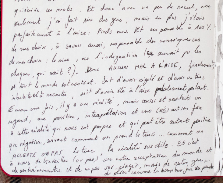 Sketchbook analytique. Association de textes et de dessins les illustrant. ± 1 texte et 1 dessin par jour Ou comment noircir le papier pour blanchir son âme, jeter mots et maux pour s'alléger le cœur, le corps, la tête et l'esprit. NB: ni le texte ni les dessins n'ont vocation à être des chefs-d'œuvre ou des prouesses techniques ou lyriques. C'est juste une méthode de progression.