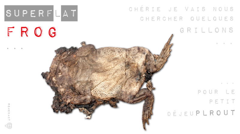 Par S. BOUILLET, 20 août, 2012 Publié dans Graphisme Photographie SuperF(l)at frog: - chérie, je vais nous chercher quelques grillons... ...pour le petit déjeuPlrout Voir plus de Grenouille Mort Route Superf(l)at France Escout Aquitaine Dailymage