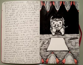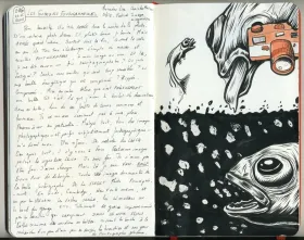 Sketchbook analytique. Association de textes et de dessins les illustrant.