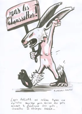 Lapin angora en colère: après une épilation sauvage pour donner des poils servant à fabriquer des pulls, chaussettes et écharpes angora...