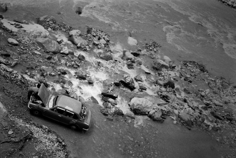 Fin du trek de Jomosom. Après les deux derniers jours à 6 et 7 heures de marche, j'en ai plein les pattes. Je prends le taxi que j'ai doublé arrêté dans 40 cm d'eau. Sur la toile de toit de cette superbe Toyota corolla, un spiderman peint se découpe sur fond jaune citron. Les portes n'échappent pas à la déco et ont des images collées a l'intérieur. un bruit lourd de caillou se fait parfois entendre quand on passe des flaques de boue, arrosant les pieds de beuh des bas-côtés, faute de mauvaises herbes traditionnelles... Après un mutton chowmein a Beni, changement de taxi... Au bout d'un moment je vois une borne: Pokhara 40 km, et merde, encore 1 heure et demi pensai-je. L'horloge numérique rajoutée (l'analogique d'origine bloque a 10h40) finit par ne plus indiquer l'heure: il est 22 minutes, d'on ne sait quelle heure. Les deux vieux à ma gauche se tiennent à une espèce de corde, moitié sangle, moitié filet pour poissons microscopiques...anciennement la ceinture de sécurité avant gauche. Une lampe en forme de mini presse-agrume s'affole entre le vert-rouge-bleu, coiffant un rétroviseur panoramique démesuré. Un bruit sourd métallico-électronique s'ajoute à la musique lorsque l'on freine, ajoutant aux vibrations lorsque le bolide dépasse les 70km/h. Parfois dans les descentes, on laisse passer un bus, profitant des échappements à hauteur de notre fenêtres quand il remet gaz. Ganesh, dieu hindou à tête d'éléphant trône sur le tableau de bord, protégeant ainsi la voiture et ses 6 occupants.