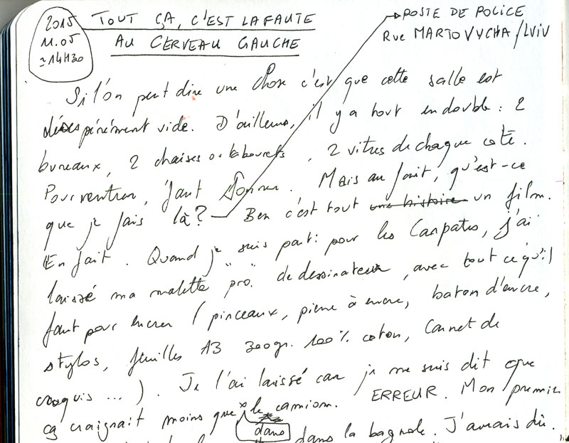 Sketchbook analytique. Association de textes et de dessins les illustrant. ± 1 texte et 1 dessin par jour Ou comment noircir le papier pour blanchir son âme, jeter mots et maux pour s'alléger le cœur, le corps, la tête et l'esprit. NB: ni le texte ni les dessins n'ont vocation à être des chefs-d'œuvre ou des prouesses techniques ou lyriques. C'est juste une méthode de progression.
