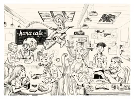 5. Posez les noirs dont les bords seront estompées avec des « langues », c’est-à-dire des traits qui commencent fin et finissent épais dans le noir