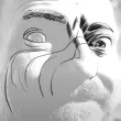 - Encrez : comprenez bien d'où vient la lumière et les ombres qu'elle projette : ombre portée, lumière réfléchie… Faites les aplats de noirs puis les petites langues de gris, ou d'abord les contours et remplissez ensuite les noirs. Pour les langues de gris, orientez-les par rapport à la lumière ou par rapport à la surface de votre volume (voyez le nez, les joues etc. en 3D)