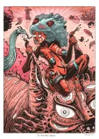 - Lâchez-vous : dupliquez votre portrait encré et verrouillez-le. Sur le calque dupliqué, modifiez tant que vous voulez la réalité de votre portrait : ajout d'une murène (ou de votre animal de compagnie préféré), d'un stylo (ou tout autre outil spécifique que vous utilisez personnellement), dans le même style que votre portrait encré. Gardez un peu de liberté d'encrage par rapport à votre croquis.