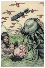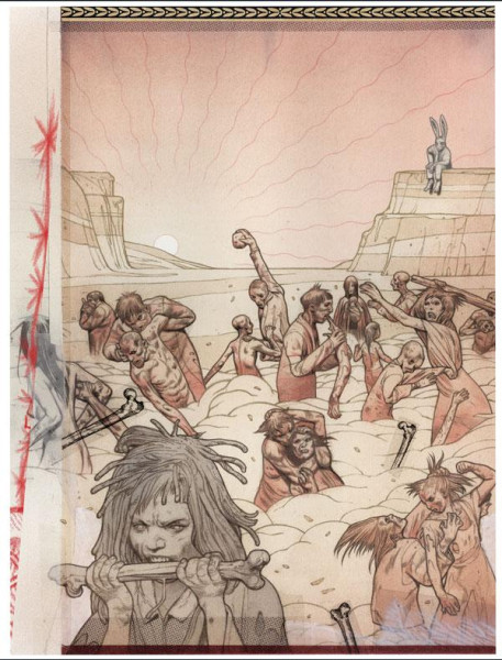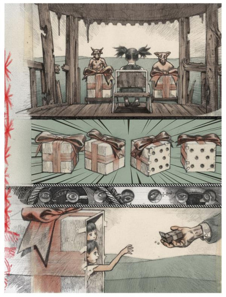 Mais ce que j'ai adoré avant tout, ce sont les planches de BD dessinées par l'excellent artiste plastique Joao Ruas, sur fond de Mister Rabbit, enfants et vaccins d'un virus inexistant.