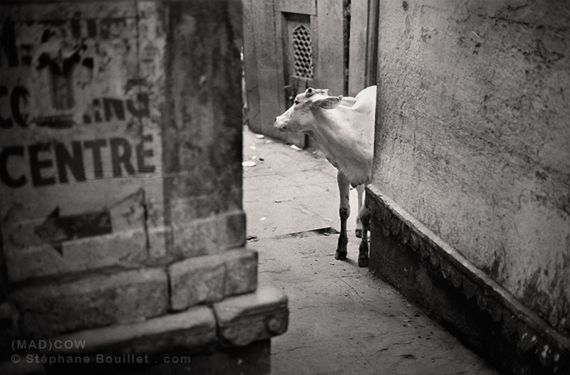 Vache sacrée au détour d'une ruelle de Varanasi, Inde, 2008