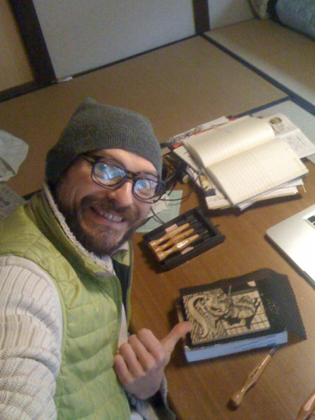 Bref, pour en revenir à nos chers moutons, et essayer de faire un bilan de ces 3 mois, je dirais que j'ai avancé en BD et Ukiyo-e, un peu en japonais, mais que dalle en japonais écrit, ou si peu. La grosse difficulté du japonais finalement. Je n'ai pas non plus avancé en tourisme japonais: pas mis les pieds dans un onsen, et très peu dans des temples etc. Mais d'un autre coté, c'était vraiment pas le but de la visite, hein. Alors du coup j'ai avancé, mais pas fait de trucs vraiment pro. finalement. J'aurait aimé je crois, avec du recul, faire une nouvelle dessinée par semaine, genre 7 pages, sur un yokais. Ou continuer sasabudi et donc écrire, réfléchir et dessiner tous les jours. Ce que je n'ai pas fait. Et avec le workshop ukiyo-e, mes pots de nettoyage des pinceaux ont eu le temps de s'évaporer de moitié ! Autant dire que l'odeur de l'encre de Chine, le frottement sur la pierre à encre, et la création (bordel !) me manquent terriblement. Et pour ce qui est du sketchbook, ça n'a pas avancé non plus, mais je dois bien avouer que je ne suis pas trop inspiré. Tout est trop occidental ici. Enfin je déconne quand je dis ça, car il y a bien des geishas, les temples et tout le reste, mais je suis pas trop intéressé par les villes, les voitures... Mais d'un autre coté j'ai pas non plus davantage croqué les forêts, ou si peu. Bref, je me cherche encore et toujours dans ce que j'aime ou pas faire. La solution étant peut-être tout simplement de se bouger le mou pour faire des trucs (aussi) qui sont chiants à faire, quitte à y trouver au bout d'un moment une satisfaction.Yep, c'est un peu comme les cheveux: certains y voient un truc chiant, et je crois que c'était mon cas aussi au début, mais maintenant j'aime bien ça, au point d'avoir acheté ici un petit livre sur les coiffures des geishas !