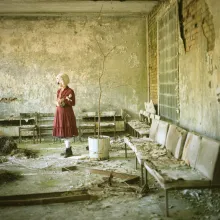 - photographies de Stéphane Bouillet d’un clown (Lucie B.) dans la zone d'exclusion de Tchernobyl - format carré - 21 cm - couleur - écrit en trois langues, français, anglais et ukrainien.